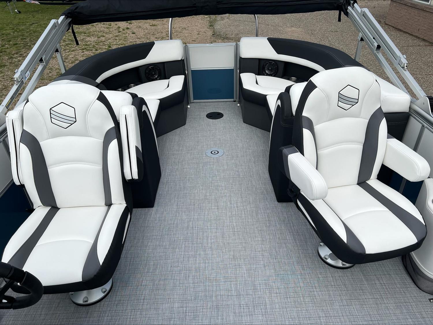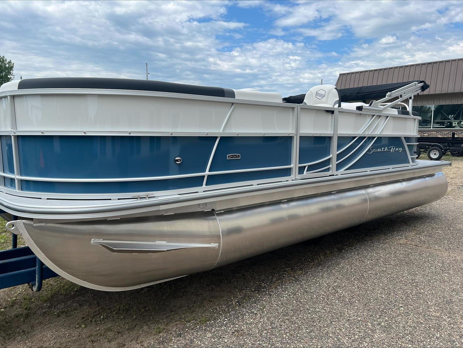 Brand new 2026 South Bay 22 ft cruising pontoon. This pontoon has composite flooring no more mold, rot and its 40% lighter. Pontoon includes power Bimini top, snap on cover, phone holder/charger, lighted speakers, Bluetooth wet sound radio, dual captains chairs, ski tow bar, 25 inch tubes, and 24 chrome cup holders.