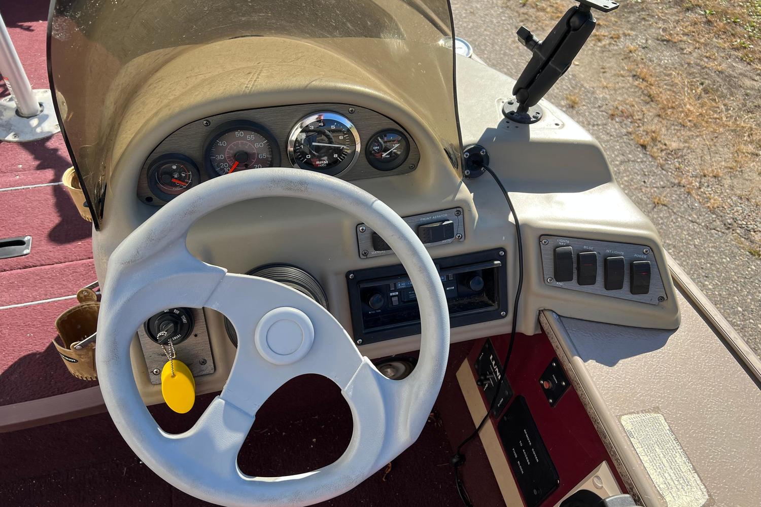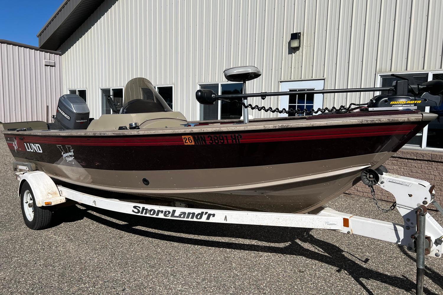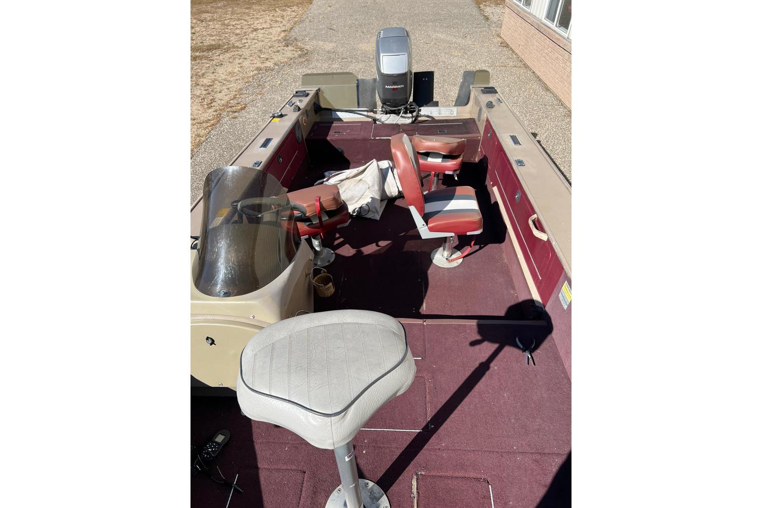 This boat comes with a 2- stroke 115 hp oil ilnjected outboard engine. Also comes with a cover, wave whackers, 70 lb Minnkota trolling motor and Shorelander trailer. Transom and floot are solid but could use some new carpet or use as is. This boat has been laker tested and checked over.
