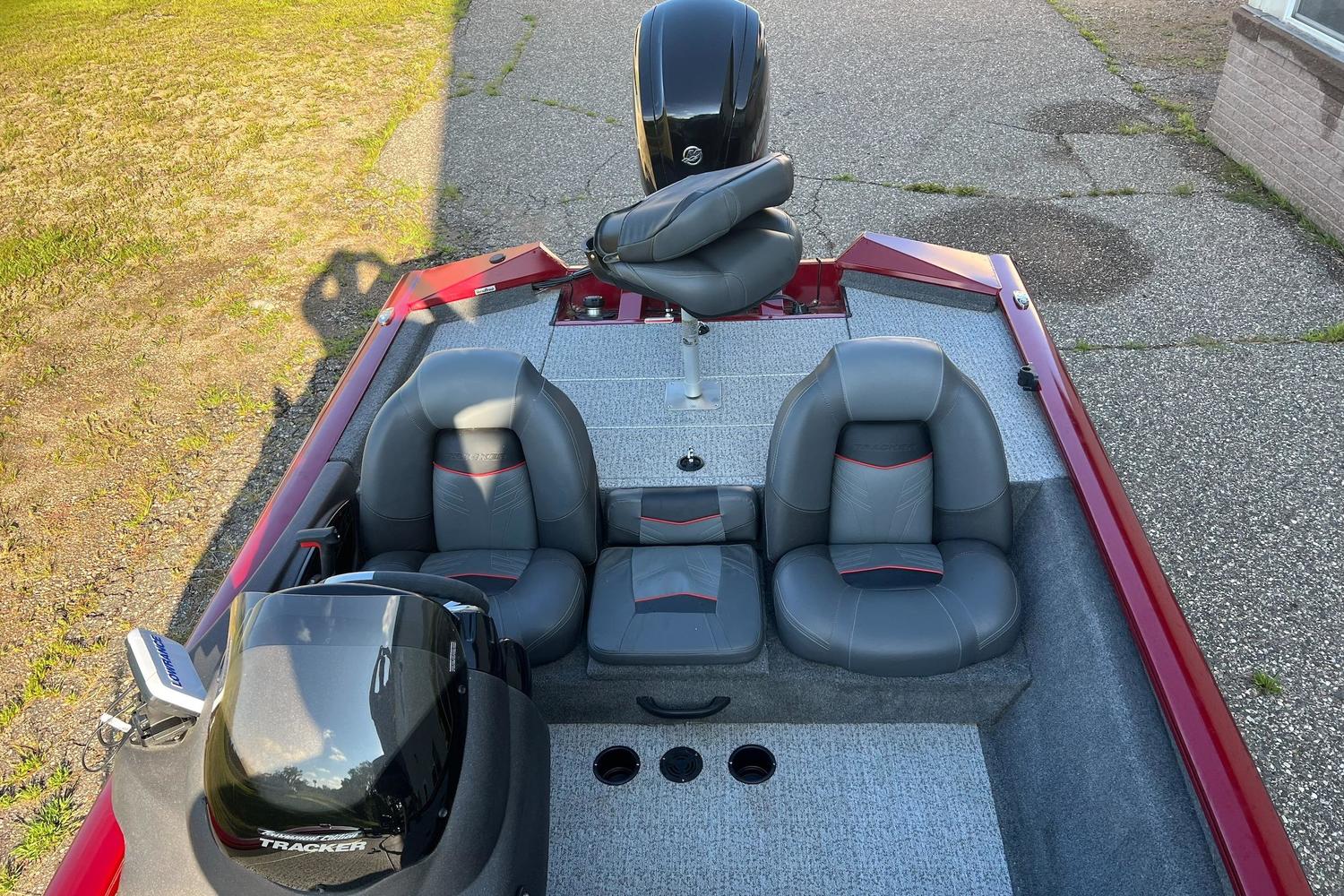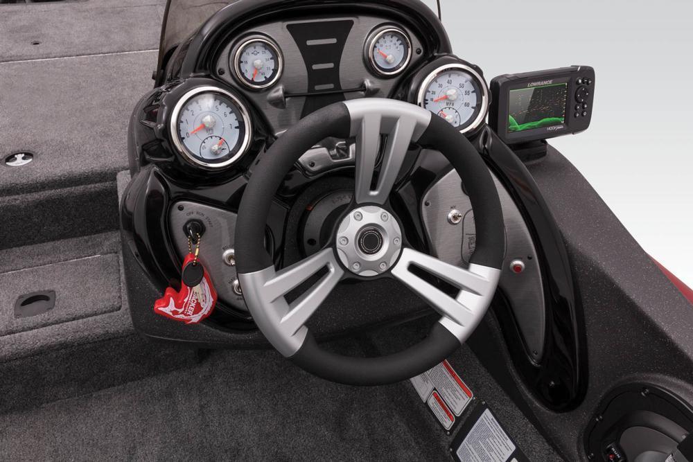 This tracker is fully equipped with the tools you need to tackle the tournament trail. With a big bow deck laid out just like the pros demand, plus dual color graphs, a 24V trolling motor and a 21-gallon livewell, it's designed to help you find fish, catch them and get you back to the weigh-in fast.